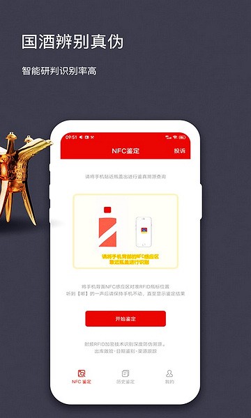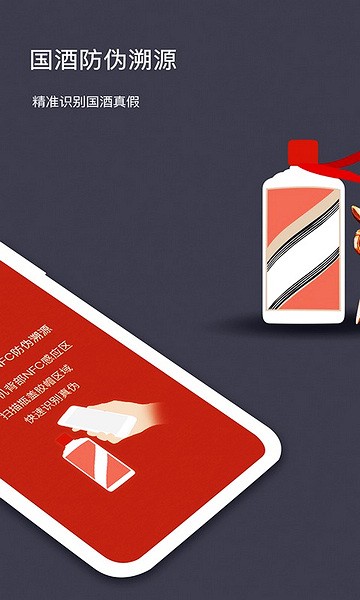 1、通过手机NFC扫描瓶盖,快速识别真伪,用户只需使用手机背部感应酒盖胶帽区域,即可自动比对贵州茅台真伪信息。流程便捷,识别率高,是市面公认的真假查询权威软件。