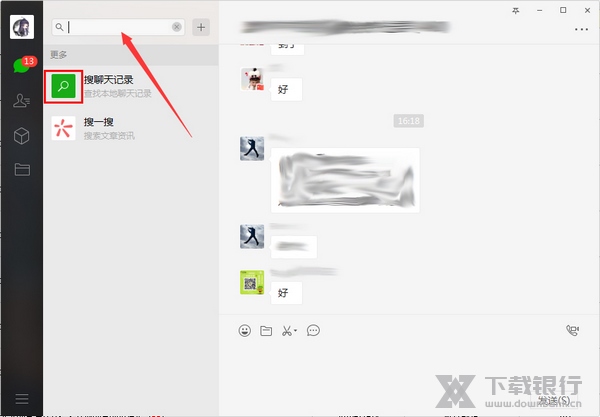 2、点击用户头像后的搜索框,并打开“搜聊天记录”;