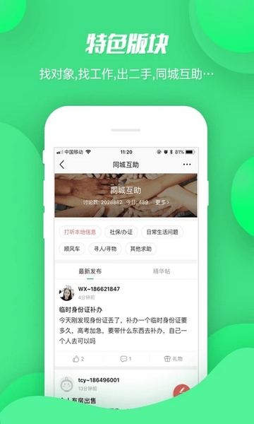 实时掌握到同城的服务信息,提供的动态内容十分清晰;