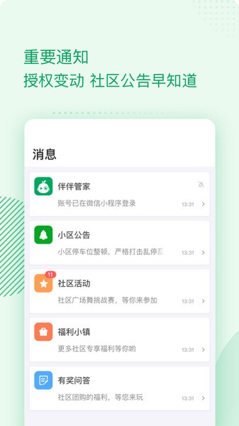 总体来说,这款APP不仅让生活更便捷,还提升了安全性,特别适合现代人追求高效、智能的需求。我觉得它不仅是门禁工具,更是社区生活的好帮手!如果你也在寻找一款安全又贴心的智能家居助手,伴生活绝对值得一试!