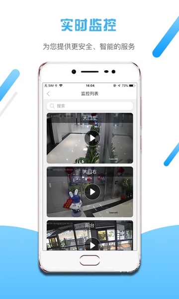 浏览健康列表,观看到家居各个位置的监控视频;