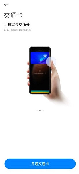 小米手机NFC功能聚合移动支付、交通出行、生活服务等多种场景,致力于为用户实现“一机在手,出行无忧"的智能便捷生活,在小米钱包App开通后,通过双击电源可使用交通卡、MiPay、门卡、elD、电子车钥匙等功能