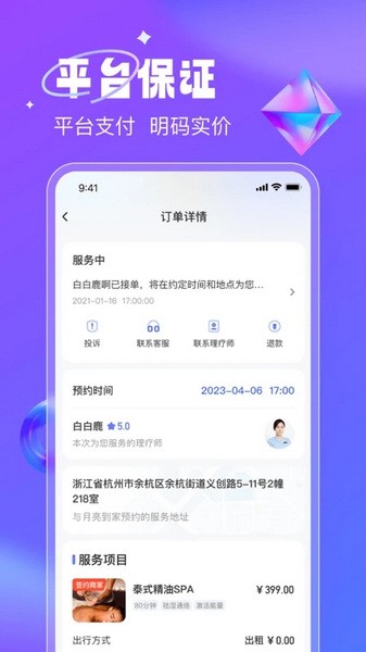 3、极速上门:我们会优先推荐距离最近的技师,目前服务已覆盖杭州,后续将陆续开通全国其他城市地区。