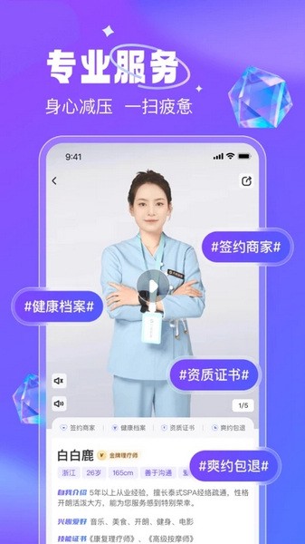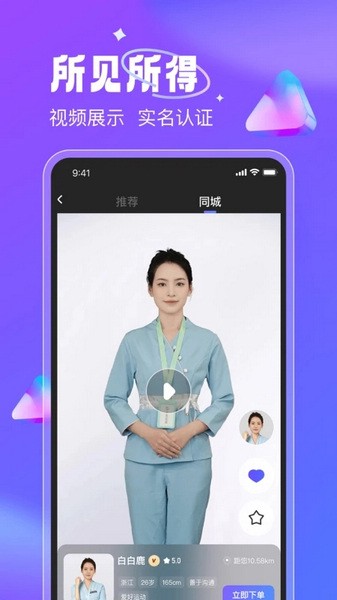 1、所见所得:上岗技师视频展示,均通过实名认证,持证服务,拒绝虚假技师。