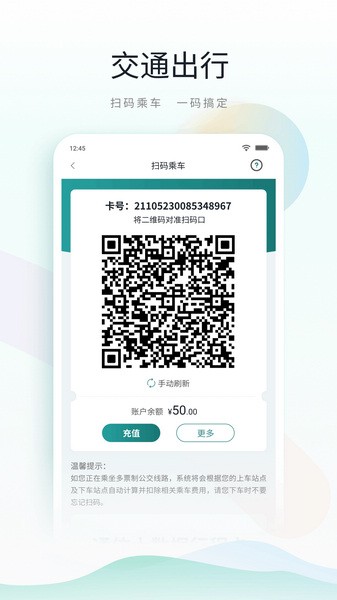 2、接着获得乘车码,在乘坐公交的时候进行扫码即可。