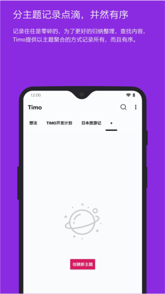 记录往往是零碎的,为了更好的归纳整理、查找内容,Timo提供以主题聚合的方式记录内容。
