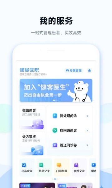 作为一名医生用户,我对健客医院app的使用体验深感满意。通过该平台,我能够高效建立医患关系,轻松管理患者,并通过图文、语音和视频等多种沟通方式,为患者提供更全面的医疗服务。药房管理的便捷用药功能更是让我受益匪浅,一键开方不仅提高了我的工作效率,也为患者提供了更迅速的用药途径。健康直播则为我提供了在线分享医学知识和经验的机会,增进了医患之间的信任和理解。总体而言,健客医院app为医生用户提供了一站式的大健康服务,极大地提升了我的工作效率和服务质量。强烈推荐给有需要的同行和患者们。