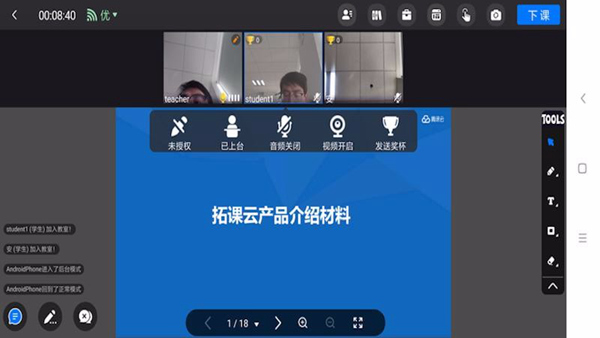拓课云Plus是一款非常实用的网课直播、学习的软件,界面简洁清爽,功能丰富强大,操作简单易上手,可兼容多端同步连接课堂,并采用了前沿网络技术,打造画面高清低延迟的互动直播教学平台,多方同屏在线授课学习!且拥有多种便利教学的工具,囊括直播白板、桌面共享、举手等,同时软件还支持本地和云端录制,轻松生成视视频,以便学员后续重温课程,巩固知识点!并为语言培训、学科辅导、双师、艺术类等不同的在线教育场景,提供了专业的实时音视频解决方案!此外,更有专业技术团队,全年7*24小时为你竭诚服务,让你更省心!