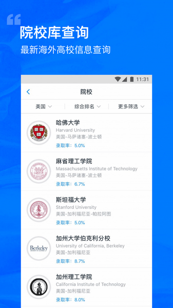 1、留学申请,智能选校神器。