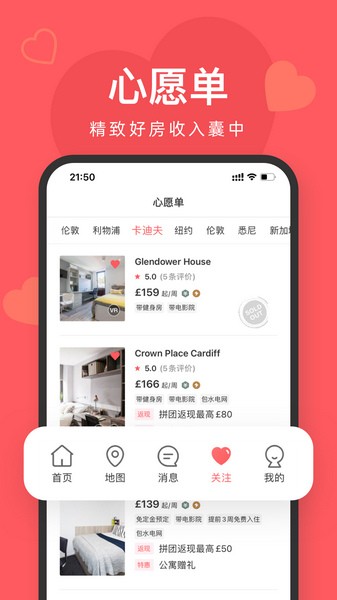 1、海量房源:租房、留学生公寓、homestay,短租。