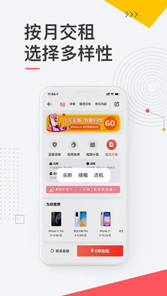 能够看到更多的租赁产品,华为、小米、苹果等品牌提供;
