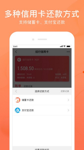 3.一键还款:支持绑定储蓄卡,进行信用卡还款,0手续费,还可使用还款金优惠券哦,笔笔省钱so easy;