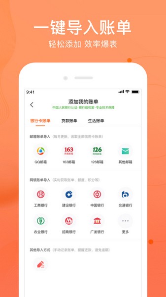 5.跨平台负债管理:支持淘宝花呗、京东白条、房贷、网贷等负债账单一键导入,管好债务,保护信用;
