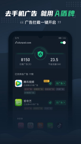 总的来说,A盾牌APP不仅功能强大,而且操作简单,界面设计也很有科技感,是一款非常实用的手机工具,强烈推荐给和我一样被各种广告困扰的小伙伴!