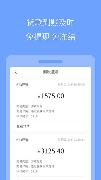 673严选又叫做673游戏交易平台,它是一款十分专业的游戏账号买卖交易平台,软件内为用户们提供了国内外的手游、端游、steam以及单机等游戏交易服务,里面拥有许多不同的分类设置,为广大的游戏玩家们提供了十分安全可靠的托管服务模式。不仅如此,软件内还为大家提供了许多优质的游戏资源,还有专业的高质量的售后服务,不断丰富完善用户体验。