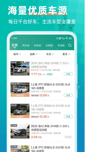 汽车街二手车拍卖app是一款专注于二手车拍卖的平台,大家可以在这里查看海量车源,也能够在线参与到汽车的拍卖中。软件还提供了多种不同的拍卖模式,大家也可以收藏自己感兴趣的车型和车源来及时获取最新的降价信息。此外,汽车街拍卖平台针对每一台汽车都提供了专业的检测报告和详细的车况详细,大家也能够在手机上查看心仪车辆的维保和出险情况。