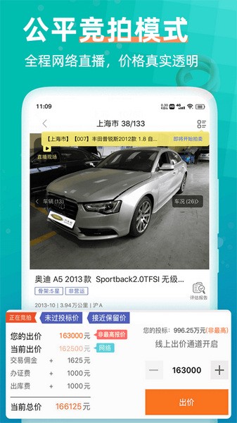 在线拍:海量优质车源,随时随地参与竞拍,快速高效,省时省心。