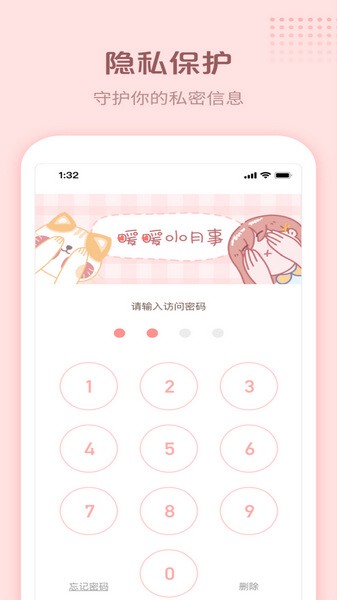 ☆隐私保护:密码锁一键锁定,杜绝尴尬,你的秘密只有暖暖知道。