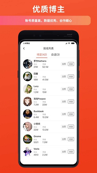 海量博主:一键发布通告,过审核后即刻开启招募博主。