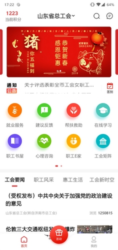 “齐鲁工惠”普惠服务职工平台是一款面向全省及各地市,集入会转会、帮扶救助、我要维权、心理咨询、职工e家、就业服务、在线学习、职工书屋、工会矩阵、婚恋交友、积分商城、会员优惠、意见反馈13大功能模块及相关工会资讯、惠工活动、工友圈的一体化智慧城市工会会员服务平台。