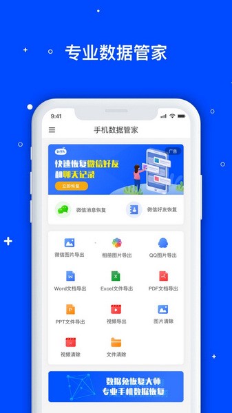 这款手机数据管家真的很实用!它能帮你恢复被删掉的照片、视频、聊天记录等等,简直是手机用户的神器。操作起来也很简单,选好要恢复的内容就能直接导出,特别方便。