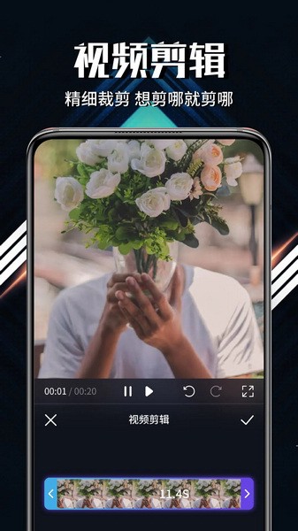 可以快速剪裁视频,还有视频变速、视频倒放,界面干净易辨识,操作简单快上手,一秒让你的短视频“变身”;