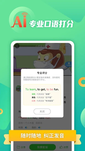 平台会对用户的学习进行专业的指导,智能的纠错用户的发音问题。