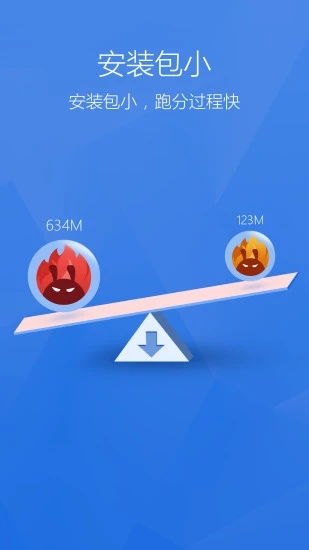 1、安装包小,体积小,跑分过程快;