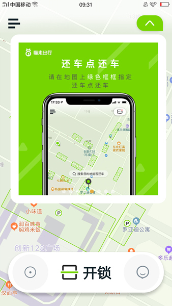 2、手机扫码开锁,轻拧车把前进