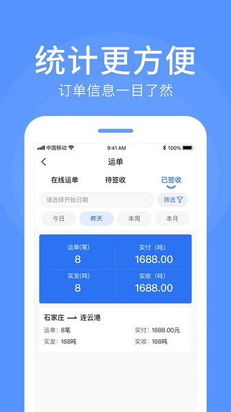 2、一目了然的运单信息,使用列表的形式展示每一笔运单详细的状态;