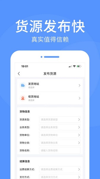2、用户在应用上自主发布货源信息,吸引更多发货订单,满足企业的运输需求;