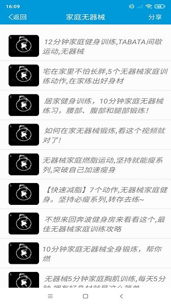 2、点进去会看到一系列健身教学视频,点击自己喜欢的教学视频。