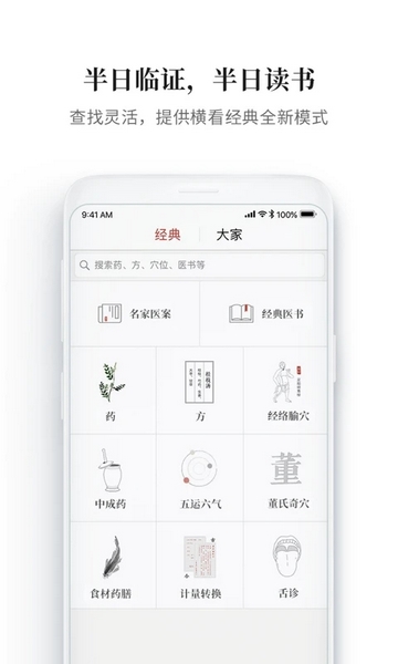 完整的资料库和强大的组合查询功能,可以让你了解药、方、经络、穴位等知识;