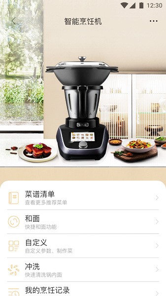 3、在设备页面,可以查看提供的功能,比如和面、菜谱清单、冲洗等