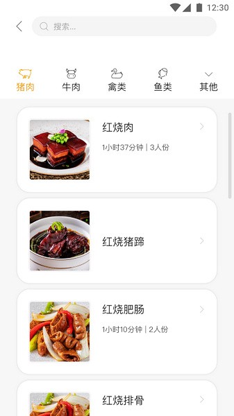 2、在线即可查看各种类型的菜谱,随时更新添加新菜谱,按照分类进行浏览;