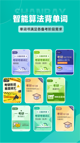 除了真题学习,还提供多种精选词书,包括考纲顺序版、考纲乱序版、考纲精简版、真题核心版、熟词生义词书等。