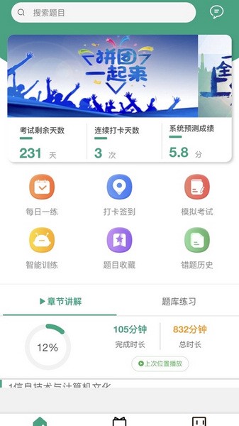 4、提供能力自测服务,直接进行题库答题,智能检测,轻松掌握自己的考试答题能力;