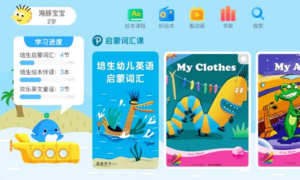海豚儿童英语是一款专门为儿童们打造的英语绘本学习启蒙软件,软件内主要为大家提供了启蒙、基础、进阶、提高四个阶段,里面拥有超多英文绘本资源,而且都是和培生、牛津等全球知名的品牌合作的,每一个绘本内容都非常丰富,配音也很生动,并且还将学习和游戏很好的结合在一起,将图书中的重点单词、句子、故事等内容以趣味游戏的方式展现出来。