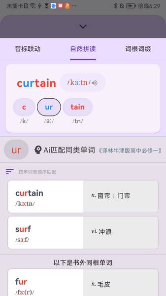 软件当中拥有同步教材单词的功能,当中会详细的表明书本中单词的自然拼读、词根词缀、音标组等可供用户学习参考
