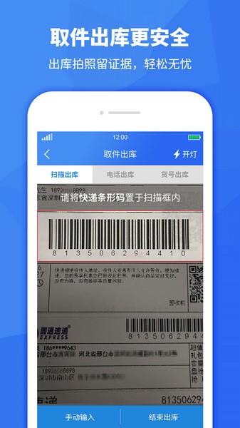 可根据手机号、运单号和货号进行查询,支持扫码和手动输入方式,精确查询和查询后的修改和出库操作;