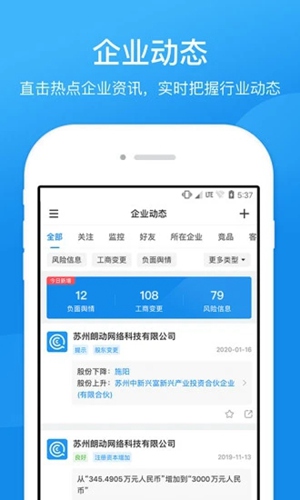 应用雷达:实时监控扫描目标企业,任何工商信息变动都将第一时间通过手机短信,APP推送或者email邮箱让您知晓!
