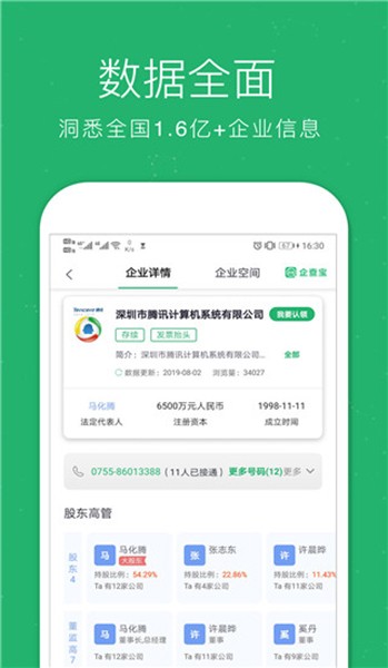 和工商局数据实时对接,企业股东、高管、工商、变更记录一目了然。