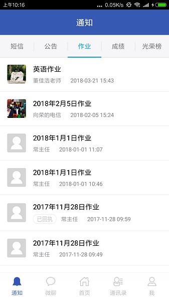 1、通知:希望谷支持向全校或全班的教师、家长、学生及群组发布各种信息,如公告、作业、成绩、光荣榜等。