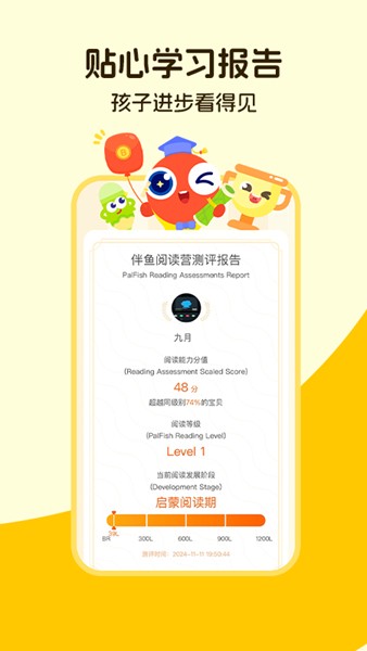 伴鱼阅读营是一款专为孩子设计的绘本阅读APP,提供了丰富的中英文绘本资源,帮助孩子们通过有趣的故事启蒙学习。软件根据孩子的英语水平进行分级,还有一套独特的定级系统,家长可以轻松找到适合孩子的阅读内容。