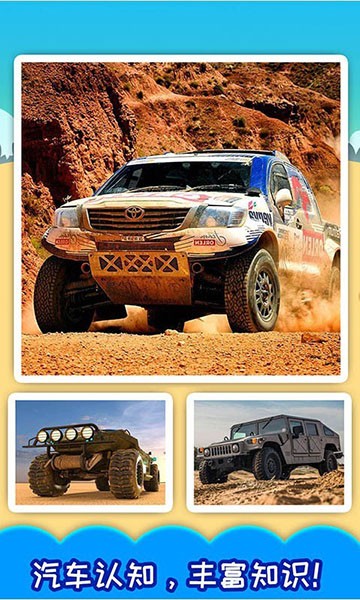 3、汽车拼图:将不同的零件,按位置拼好,组装成汽车,非常有成就感;