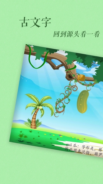 每一个古文字都有着详细的介绍,帮助孩子快速的认识了解每一个字;
