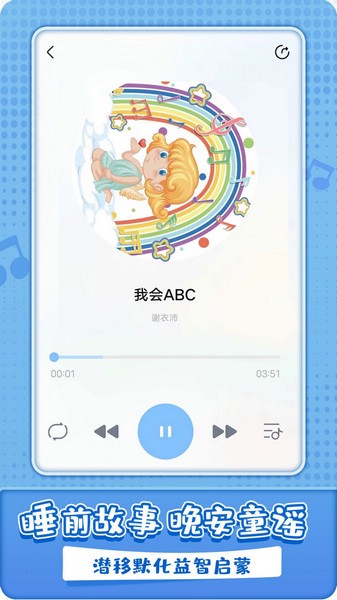 多元互动形式:设有跟唱功能,能实时检测孩子的演唱准确度并给予鼓励,增强孩子的参与感。还有儿歌动画,将歌曲内容以生动有趣的动画形式呈现,帮助孩子更好地理解歌词含义与故事内容。