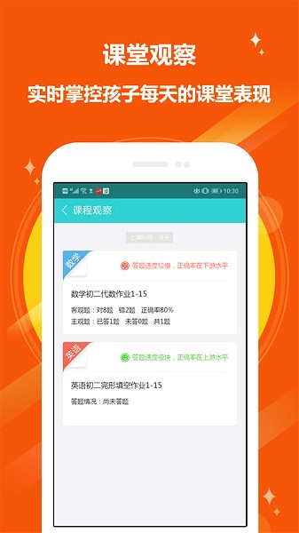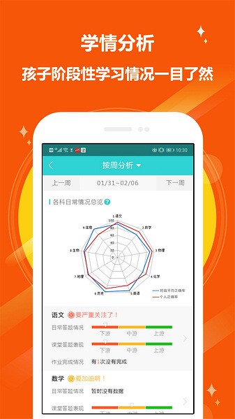 2、智能的进行分析,帮助家长更好的了解孩子的学情问题,及时的进行管理。
