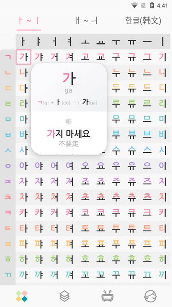 4、轻轻点击字母表中的字母,就可以播放音频,让用户能学习到正确的韩语发音;