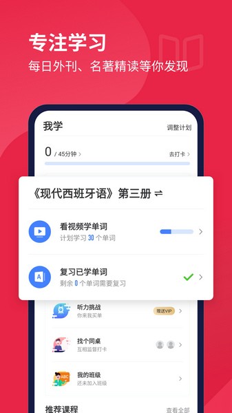 兴趣学习:有声读物、名人演讲、公开课、影视英语等丰富西语资源。